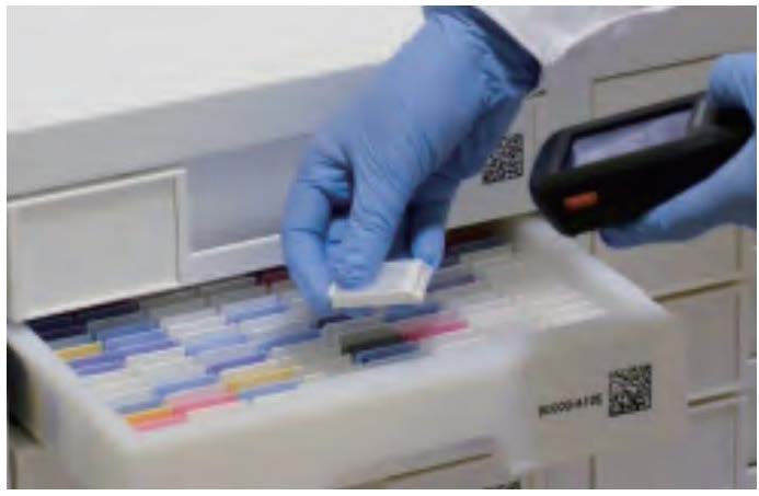 支持最高48片玻片一次批量识别, 对接归挡系统, 快速完成玻片批量识别入库和借出功能。